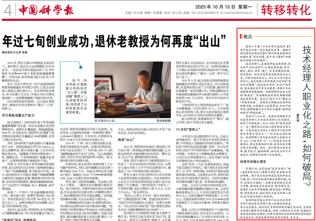 近日,教务处巩斌高级实验师在《中国科学报》发表理论文章《技术经理人职业化之路,如何破局?》,紧扣党的二十届三中全会“加强技术经理人队伍建设”部署,系统分析了科技成果转化中技术经理人的角色定位与发展路径,为破解科研与产业“两层皮”难题提供了实践思路。